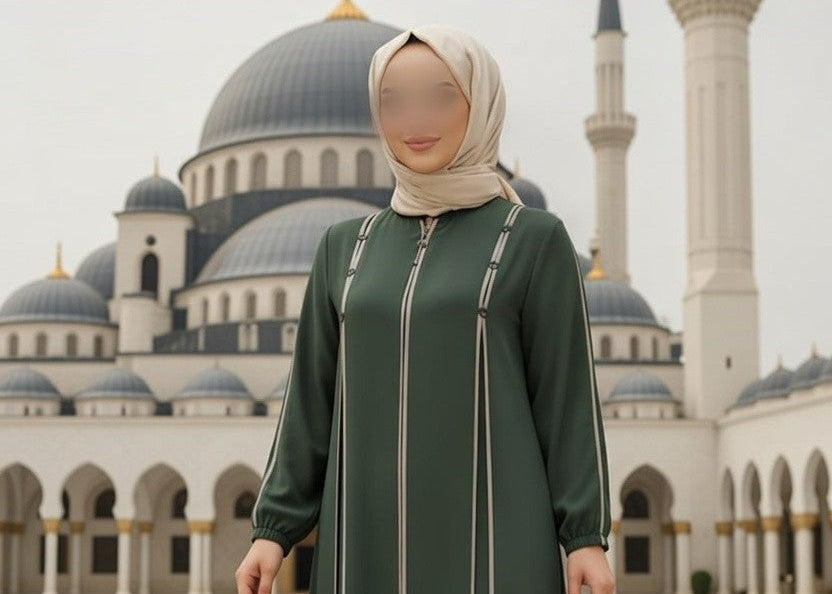 Button Contrast Lines Flowy Abaya -Pale Lavender