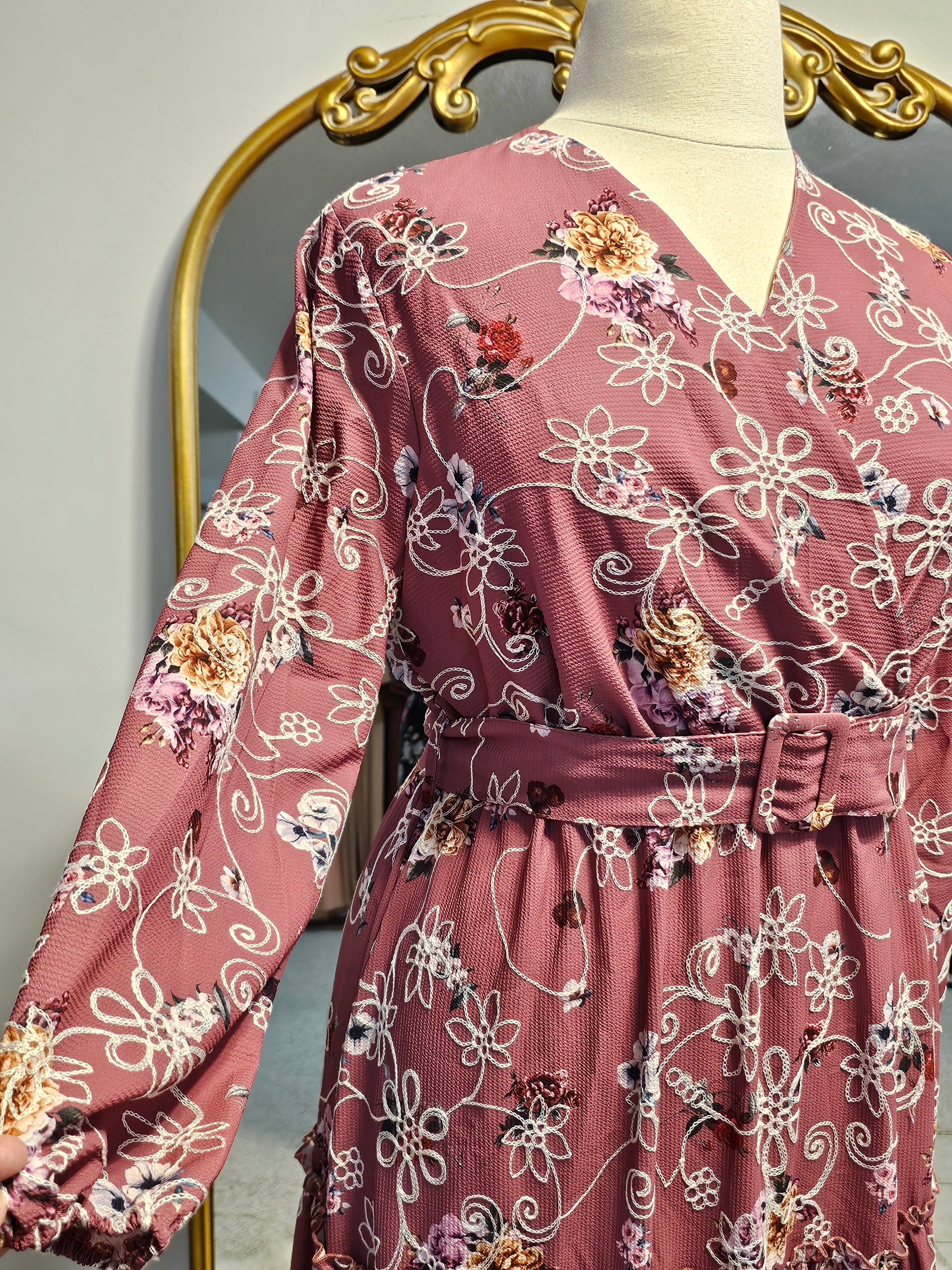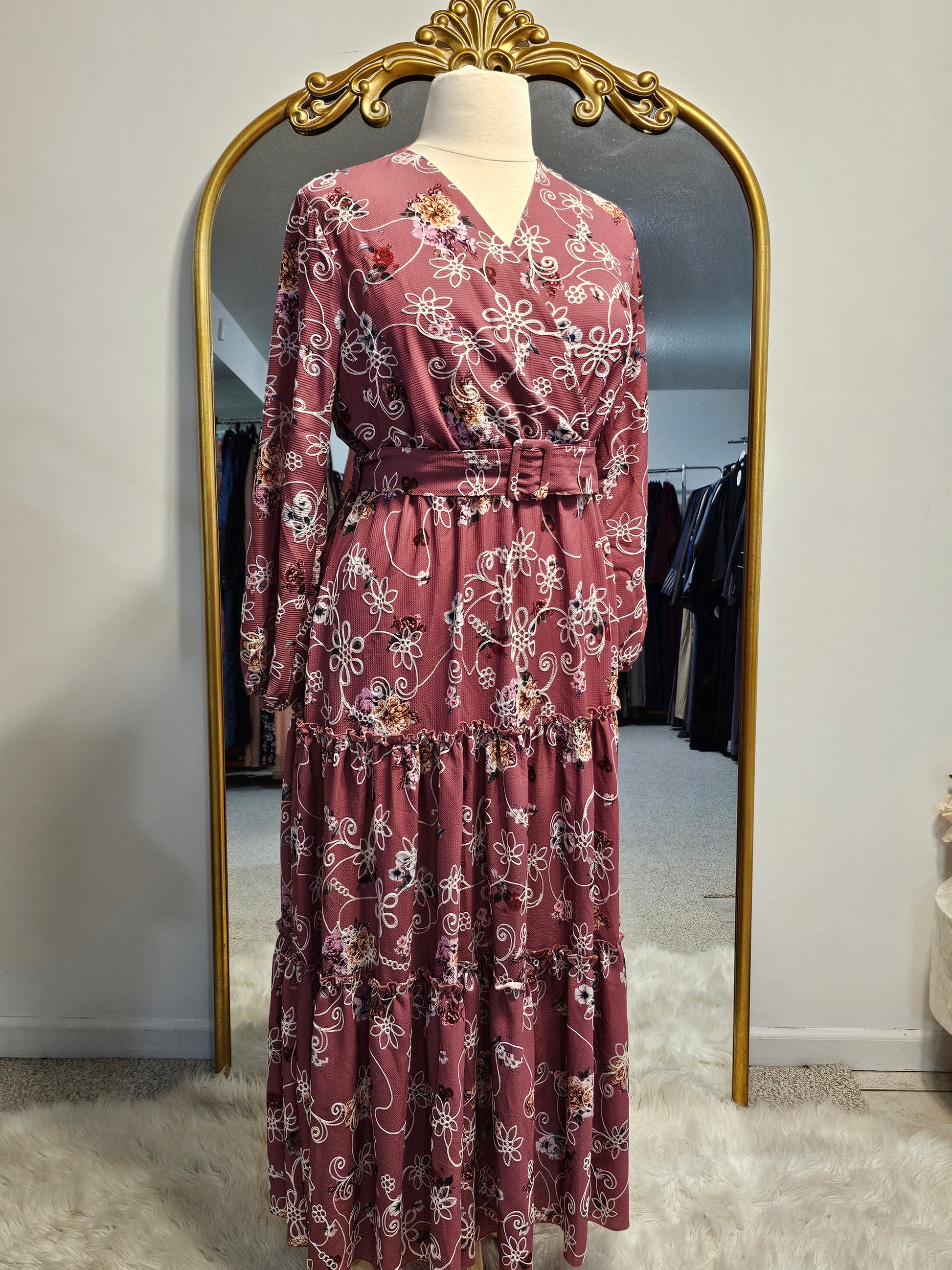 Tiered Floral Faux Wrap Dress - Rose
